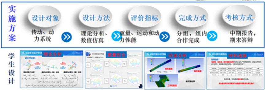 《力学、材料与设计》课程以学生为中心,以“夯实学生力学基础,提高学生自主学习能力、逻辑思维能力和应用创新能力”为教学目标。课程主要特色为内容体系交叉融合、实施贯通全部知识模块的项目式教学方法、采用侧重项目式教学效果和学生应用创新能力评价的多元化过程性考核。在梳理理论力学、材料力学和工程材料知识点基础上,建成了力学理论融合工程材料的交叉融合课程体系;完成了产、研、学紧密结合的项目式教学案例库建设,通过教学实践促进了学生对抽象力学理论的深入理解,提高了学生应用创新能力;确定了多元化过程性考核评价方案,突出“知识、思维、能力,素质” 的综合评价;为保障课程教学效果,建设了具有新工科特色的系统完整、交叉融合、理实贯通、特色鲜明的课程配套教材。